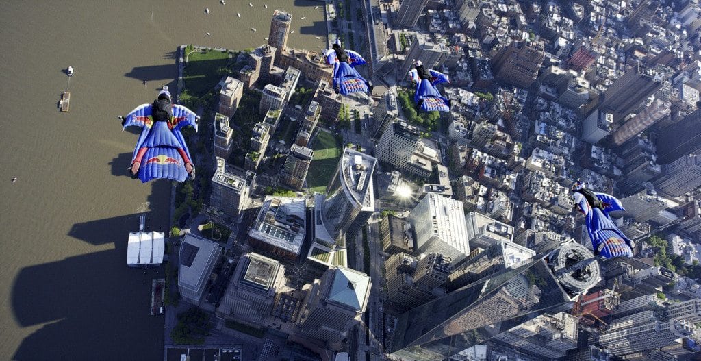 Also these gadgets are really helping us improve the wing suits. When we race through gates for Red Bull, we have little computers onboard called Flysight. There are a few other heads-up display companies that are starting to perfect things like glide ratios, horizontal speeds, and vertical speeds. A couple years ago all we had was feeling. Technology and GPS stuff has started to catch up enough that we’re able to see real-life data.